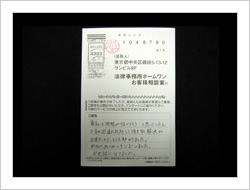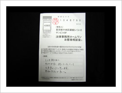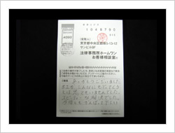 この度は有りがとう御座居ました お礼がおそくなり失礼しました 過払い金が戻るとは申込してよかったと感謝します
