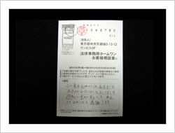 その対応を見つめ直すため、ホームワンでは、ご依頼の事件が終了されたお客様を対象に、アンケートを実施しております。