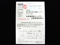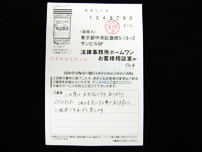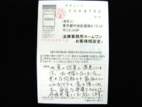 此度の結果に満足しています。お世話になりました。色々な問題にも取組んでいただけると意を強くしました。身近な弁護士さんとして今後共、宜しくお願いします。