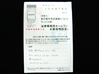 今回の過払金和解金本当に有難うございました。消費者金融2社、クレジット1社での過払金6,556,000円、先は電話してからでした。スムーズな対応迅速な処理で大変満足してます。
