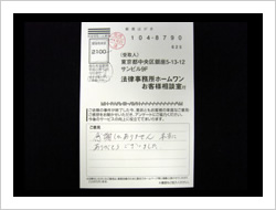 ずっと、どうしたらよいのか困っていた消費者金融の借金もあっという間に解決して頂き、もっと早くに相談していればと思いました。本当にありがとうございました。
