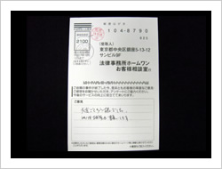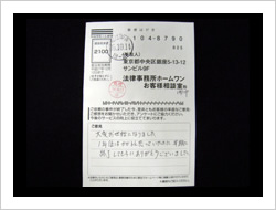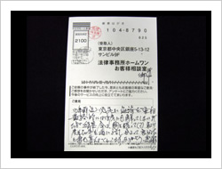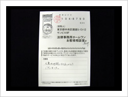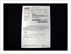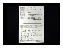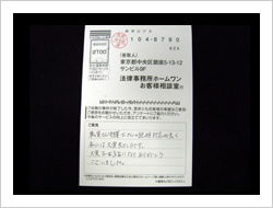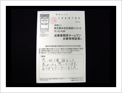 今回大変お世話になり、無事解決出来た事に、お礼を申し上げます。又、相談、依頼がありましたらぜひ、よろしくお願い致します。ありがとうございました。