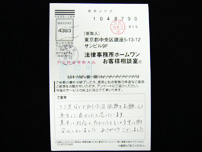 その対応を見つめ直すため、ホームワンでは、ご依頼の事件が終了されたお客様を対象に、アンケートを実施しております。