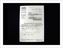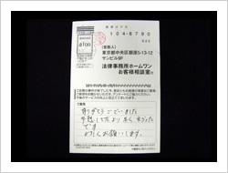 私の知らないという事で大変先生には御迷惑をおかけしました。とてもきっちりされた法律事務所だと思いました。