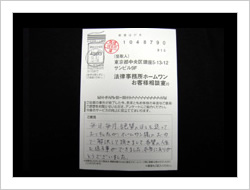 初めての依頼で不安しかありませんでしたが真剣に話を聞いて下さり又とてもスムーズな手続きで安心しておまかせできました。必要最小限のやりとりですむのがとても良かったです