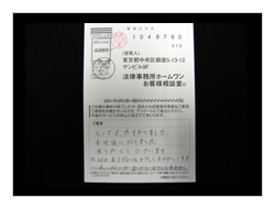 ダメもとで、そちらにお電話して良かったです。今年の大きなお年玉を頂いた気分です。本当にありがとうございました。