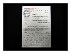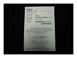 大変お世話になりました また何かまたお願いする時はよろしくお願いします ありがとうございました ホームワン弁護士によろしくお伝え下さい