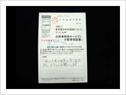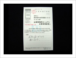 電話と書面だけで確実に早く今回解決できて、すごく親切、で、話しやすく、すごく信頼できました。すごくきちんとしている会社だと思います。また何か困まった事があったら利用したいです。ありがとうございました。感謝しています。