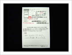 その対応を見つめ直すため、ホームワンでは、ご依頼の事件が終了されたお客様を対象に、アンケートを実施しております。