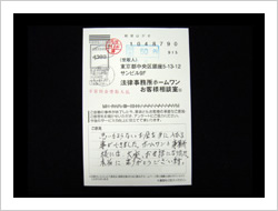 最初は本当に過払い金が戻ってくるのか不安でした。先生方にお願いしてみて、過払い金が戻ってきて、本当に感謝しています。本当にありがとうございました。