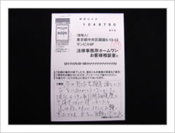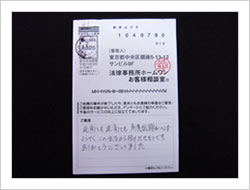 返済しても返済しても負債総額がへらず、ようやく、この生活から抜け出せそうです。ありがとうございました。(お客様相談室アンケートにて)