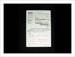ラジオでの貴所のCMを聴きだめもとでご相談させていただきましたが、期待以上の結果でした。誠に感謝するとともに、以後何かありましたら又お世話になりたいと思っています。