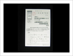 武富士の件ですが、まずは有難うございました。昨年の10月に結審したにも拘わらず、先方が11月に会社更生法となり、今の度、1年3カ月後に微々たる金となりました。期待していた分ショックでした。改めて法律の厳しさを痛感いたしました。