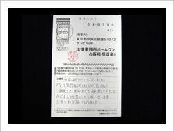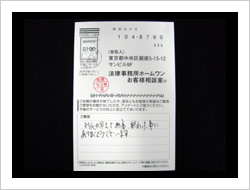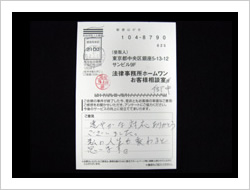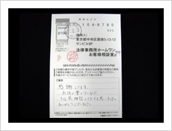 今回はありがとうございました。不安な気持ちもありましたが、思い切ってご相談して、半年ほどで解決して下さって今ではとても良かったと思っています。本当にお世話になりました。