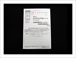 本当にありがとうございました。長い間悩んでいたので気持ちが心が楽になりました。1年前思い切って電話をして本当によかったと思っています。みなさんありがとうございました