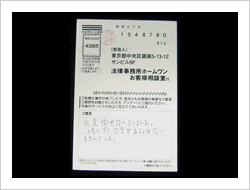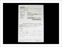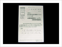 過払いの件につきましては、大変ありがとうございました。心よりお礼申し上げます。今後の人生頑張ってまいります。68歳の男より、御礼まで。