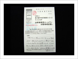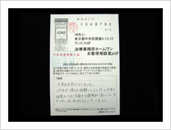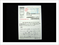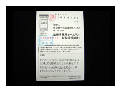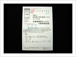 あきらめていたものが、いくらかでも手元に返ってきた事に感謝致します。少し余裕をもてる生活に戻りつつある事に喜びを感じています。本当にありがとうございました。
