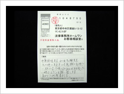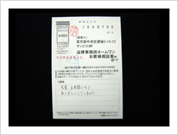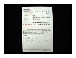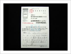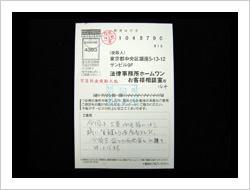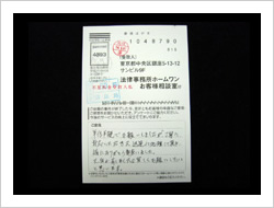 大変、お世話になりました。相談してよかった。家内にも内緒だったがすべてを話し、退職金で一括返済。そして、御社に依頼しました。中原先生ほんとうにありがとうございました。家内と、余生を楽しく過していきたいと思います。事務所の皆様にも感謝致します。