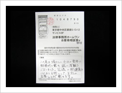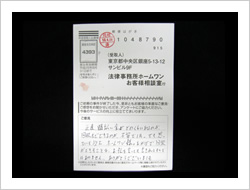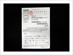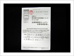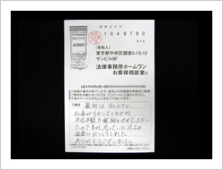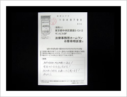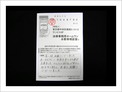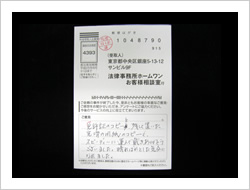 貴事務所の電話対応も良く迅速に処理していただきありがとうございました。依頼しようか迷っていましたが、お願いして良かったと思っています。