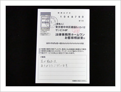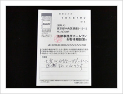 その対応を見つめ直すため、ホームワンでは、ご依頼の事件が終了されたお客様を対象に、アンケートを実施しております。