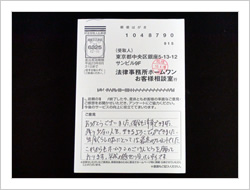 ありがとうございました。借金も清算できました。残り少ない人生、生きるよろこびができました。年金ぐらしの私にとっては最高のプレゼントでした。これからもホームワンのごけんとうを願っております。平成の徳せい令、バンザイです。