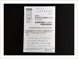 書類等の発送が遅れる時、遅れている時は連絡した方がいいですね。報告書を1月末にと言っていたが届いたのが3月だった。(お客様アンケートにて)