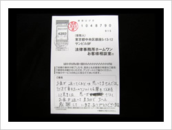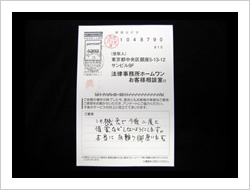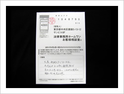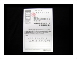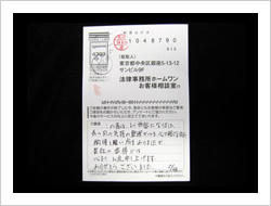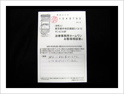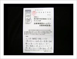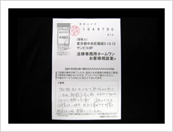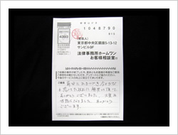 お金が返ってくるとは思ってませんでした。ラジオで毎日ホームワンのことを聞きでんわをして見ました。思いがけなくお金が返って来たので大へん感謝しています。ありがとうございました。