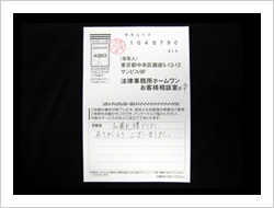 その対応を見つめ直すため、ホームワンでは、ご依頼の事件が終了されたお客様を対象に、アンケートを実施しております。