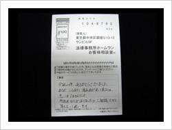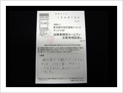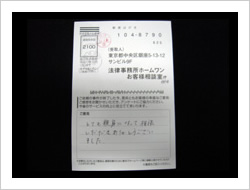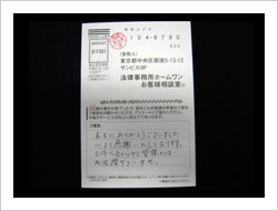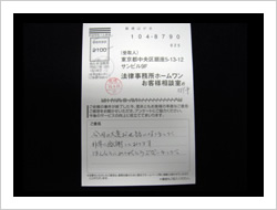 お礼のハガキ大変遅くなりました。結果から言えば私の無知な事も含めてもっと早く行動すれば良かったと思います。有り難とうございました。