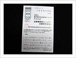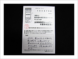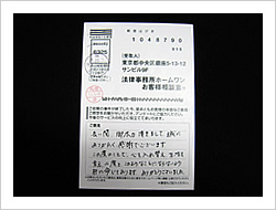 今まで法律事務所にはお世話になった事がなかったので、最初は不安でしたが、ホームワンさんの対応がとても親切で良かったです。携帯から進捗度が分かるのもすごく便利だと思いました。ありがとうございました。