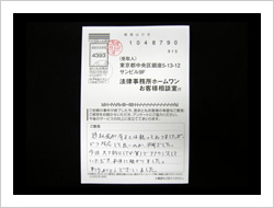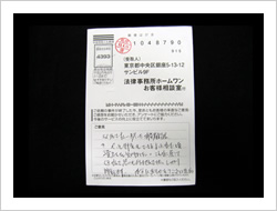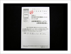 このたびは大変ありがとうございました。ここまで返金請求できるとは思わず感激しております。私と同じような方が多数いらっしゃるかと思いますのでもっとCMや新聞等などでアピールしていただくと相談し易いかと思います。以上。