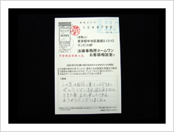 この度は相談に乗っていただきありがとうございます。過払金を回収できた事、お礼申し上げます。ありがとうございました。