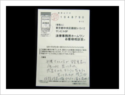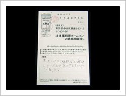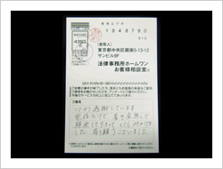 相談して、非常によかったと思いました。新聞・TV等で過払金について、いろんな情報は収集できましたが、こんなにスムーズに解決するとは!!本当に感謝の一言です。ありがとうございました。