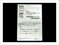 海外では必ず弁護士の生成が主治医の様にいると聞きました。私は実際に過去に刑事事件として立件できる事件に関わったことがありました。その時は知り合いの弁護士事務所に通って自分で上申書を書き、警視庁に提出して、受理され捜査が始まったのです。誰でもまさかという事件に巻き込まれることがあります。そういう時に、しっかりとした弁護士事務所があれば安心です。料金が明快で何より相談しやすいのが一番嬉しいと思います。まだ日本ではあまり認知されていないので、ぜひやって下さい。