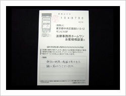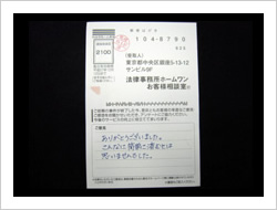 弁護士ってもっと上から目線かと思っていましたが、とてもわかりやすくせつめいして下さったりで本当によかったです。ありがとうございました。