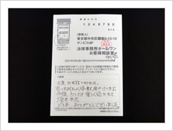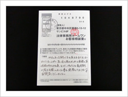 法律についてはあまり分かってないのでいろいろ質問しましたが、分かりやすく説明していただき安心しました。今後何かありましたら、ぜひ御事務所へ相談させていただきます。ありがとうございました。