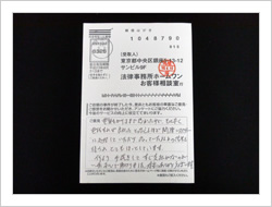 過払い請求の依頼をしてから1年以上経過したが、結果的に予想以上の金額を取り戻してくれた事に、大 変感謝しています。成功報酬も、割安だと思いました。本当にありがとうございました。機会があれば宜しくお願いします。