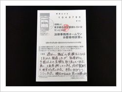大手消費者金融に過払金の請求をして頂きました。返ってこないかもしれないお金を戻して頂きありがたく思っています。費用も納得の額です。本当にありがとうございました。