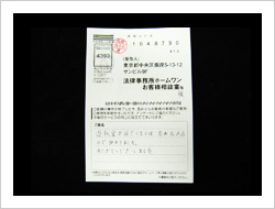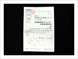 10年近くあきらめていたのに相談した時半身半疑でしたが解決できて本当に感謝しております。大変おせわになりありがとう御座いました。