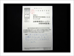その対応を見つめ直すため、ホームワンでは、ご依頼の事件が終了されたお客様を対象に、アンケートを実施しております。