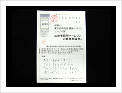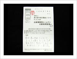 一時は多重債務で大変苦しい思いでした。御社のお蔭で回収出来感謝しています。今後は身の丈に合った借入をするつもりです。大変お世話に成りありがとうございました。