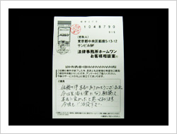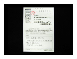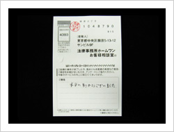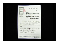 依頼の件本当にありがとうございました。今は生活も楽になり相談して本当に良かったと思っております。今後もご活役下さい。