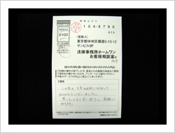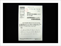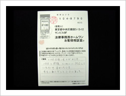 まずこの度は色々おせわになり有がとうございました。初めは半信半疑でお願い致しましたが、まさかこの様に多額の過払金が戻ってくるとは思いませんでした。期間も早く経過説明も書面等で丁寧にしていただき感謝致しております。信頼出来るホームワン様にお願いしてよかったです。