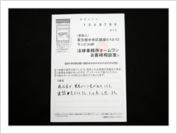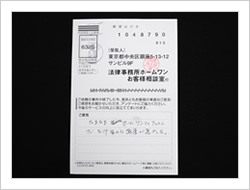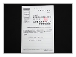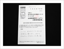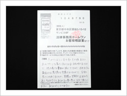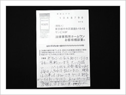 大変お世話になりました。もうすこしはやく法律のことを知ることがあったらいいなと思いました。本当にありがとうございました。