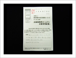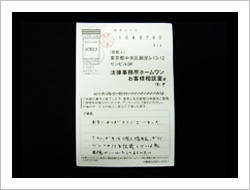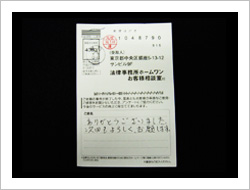 暑中御見舞申し上げます。テレビで、見てお電話させていただきましたが、誠実な御対応をして下さいまして本当に感謝しております。皆様の御活躍をお祈申し上げております。