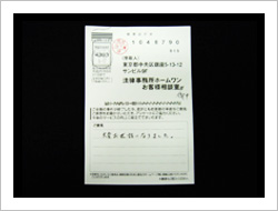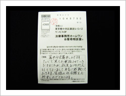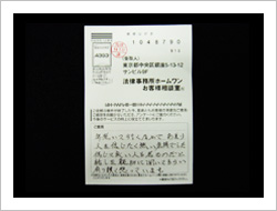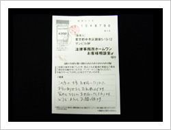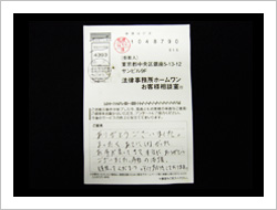 本当にありがとうございました。このハガキは個人情報、プライバシーのことを記載している為目隠のシールにしてもらいたい。