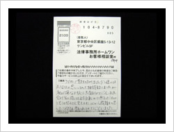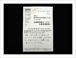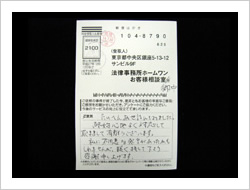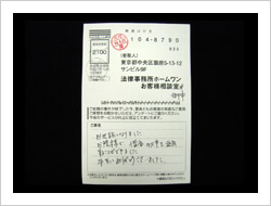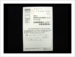 今回ありがとうございました。法律が絡む問題が生じた場合またお願い致します。