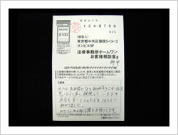 ラジオ番組でのCMに依り、相談し今回満足のゆく解決となりました。有りがとうございました。何かの際には又ご相談をさせて頂きたく存じます。