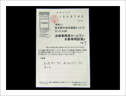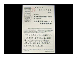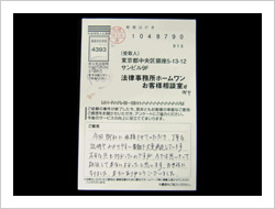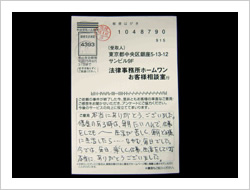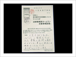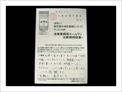 今回御社に依頼させていただき、丁寧な説明や分かりやすい書面で大変満足しています。不安な点も多かったのですが、今では思い切って相談して本当によかったと思います。お世話になりました。本当にありがとうございました。