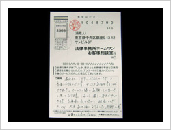 大変たすかりました。スピーディーで電話だけの対応、書類の送付や着手がかからないことなど、庶民には便利なシステムでした。ありがとうございます。